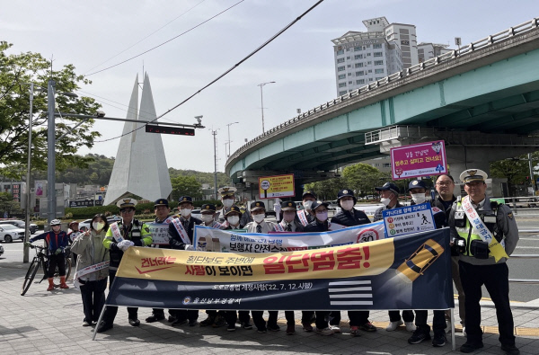 이날 캠페인은 남부경찰서 교통안전계 경찰관의 도움으로 문수실버복지관의 실버폴 봉사자 11명의 어르신들이 울산 시민과 차량운전자를 대상으로 무단횡단과 안전 보행에 관한 경각심 고취에 도움을 줄 것으로 기대된다.