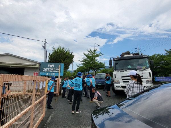 29일 민주노총 금속노조 부산양산지부 대우버스지회(이하 자일대우버스노조)에 따르면 사측인 자일대우버스는 지난 20일부터 부품 회수를 위해 화물차를 대동해 공장 진입을 시도했다. 사측은 20~23일, 28~29일 총 6차례 공장 진입을 시도했으나, 노조가 입구를 막으면서 무산됐다.