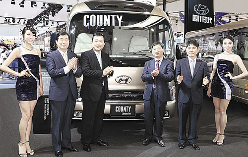 최한영 부회장은 인사말에서 “‘카운티’는 세련된 디자인, 우수한 경제성과 편의성을 갖춘 프리미엄 중형버스”라고 소개, “현대차는 중국형 ‘카운티’를 시작으로 중국 시장 공략에 박차를 가해 상용차 글로벌 톱 5 도약의 발판을 마련할 것”이라는 포부를 밝혔다.