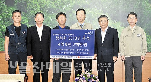현대자동차 노사가 추석을 맞아 어려운 이웃을 위해 사회공헌기금 4억8,300만원을 쾌척했다.