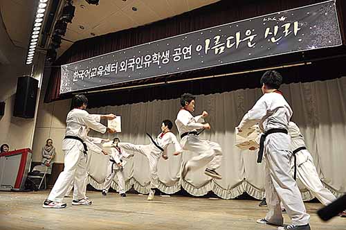 ▲ 신라대학교(총장 박태학)는 최근 교내 예음관 콘서트홀에서 46개국 출신 외국인 유학생 300여 명이 진행하는 ‘아름다운 신라’ 유학생 공연 행사를 가졌다. 이날 행사는 태권도, 사물놀이 등 한국전통문화 공연과 연극, 뮤지컬 등 다양한 볼거리들로 진행됐다.