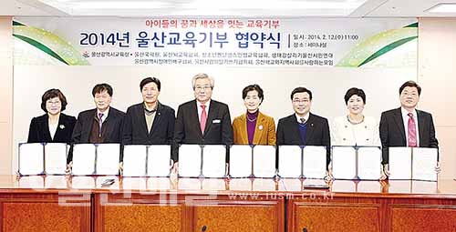 울산시교육청은 12일 울산국학원, 뇌교육협회, 울산학교와지역사회를사랑하는모임 등 7개 기관 및 단체와 교육기부 협약식을 가졌다.