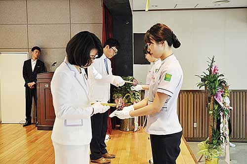 ▲ 신라대학교(총장 박태학) 의생명과학대 치위생학과는 최근 교내 동북아비즈니스센터에서 최인순 의생명과학대 학장, 권양옥 부산시 치과위생사회장 등 교수진, 학부모, 예비치과위생사 30명이 참석한 가운데 예비치과위생사 선서식을 가졌다.