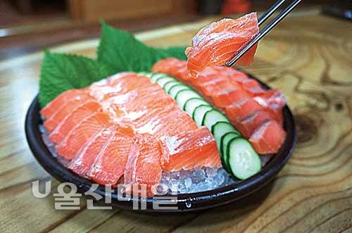 ▲ 바다송어회는 비린내가 나지 않아 회를 잘 먹지 못하는 사람도 쉽게 즐길 수 있다.