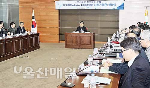울산시는 9일 오후 시청 본관 7층 상황실에서 ‘ICT융합 Industry4.0S(조선해양)사업 기획(안)’에 대한 설명회를 개최했다.