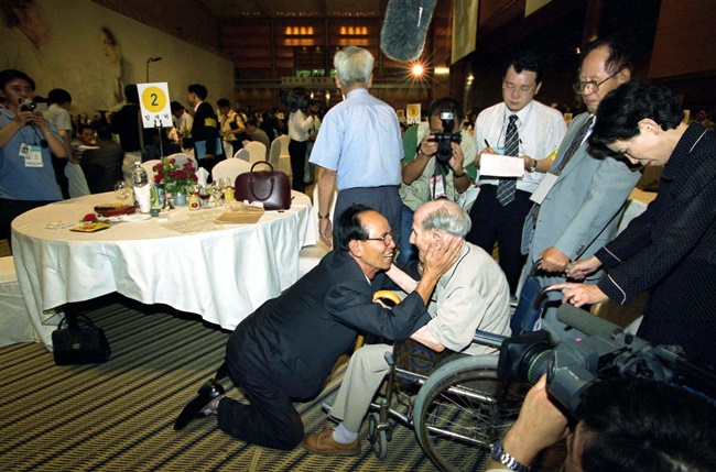 ▲ 국가기록원이 28일 공개한 '2000년 남북 이산가족 상봉' 모습. 행정자치부 국가기록원은 KBS 이산가족찾기 특별생방송 시작일을 맞아 '이달의 기록' 주제를 '누가 이 사람을 아시나요? 아직도 마르지 않은 눈물'로 정하고 관련 기록을 오는 29일부터 누리집을 통해 제공한다고 28일 밝혔다. << 국가기록원 제공 >>