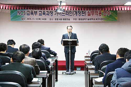 동원과학기술대학교(총장 장호익)는 지난 12일 NCS지원센터(국가직무능력표준) 주관으로 2016년 전국 유일의 NCS기반 교육과정 100% 운영대학을 목표로 전략적 교직원 연수를 개최했다.