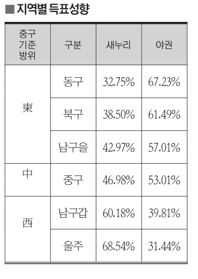 울산의 정치 1번지인 중구도 더 이상 여권이 안심할 수 없는 지역이 된 셈이다.