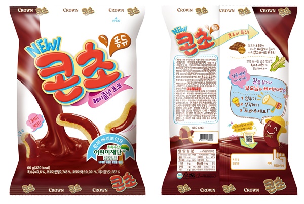 지난해 9월 실종 아동 정보를 담은 죠리퐁 400만개를 희망과자 1호 제품으로 선보인 크라운제과는 이번에는 콘스낵 콘초와 콘치를 희망과자로 선정해 800만개를 생산하기로 했다.
