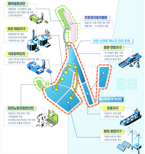 ‘산단 대개조 사업’은 울산·미포국가산단을 거점 삼아 인근 울산테크노일반산단, 이화일반산단, 매곡산단, 모듈화일반산단 등을 패키지로 묶어 노후산단을 첨단화·고도화·구조화한다.